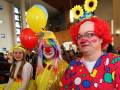 Als bunter Clown verkleidet nahm Gemeindesekretärin Sabine Tigges am Gottesdienst teil. Und Küsterin Lutmilla Martens entpuppte sich als giftiger Fliegenpils mit einer entsprechenden rot-weißen Kopfbedeckung. Diese aufzulassen war bei dem karnevalistischen Gottesdienst durchaus gewünscht.