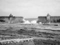 großteils zerstört. Das Wasser steigt bis etwa in Höhe der Einmündung der