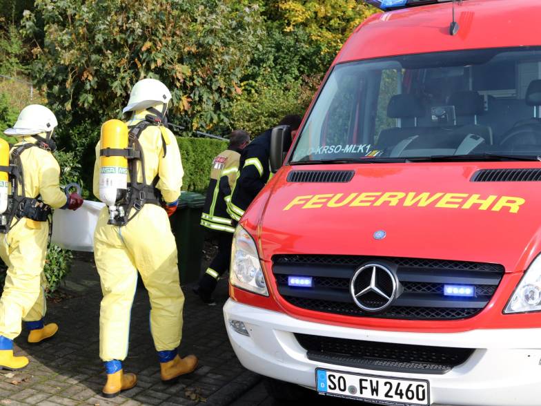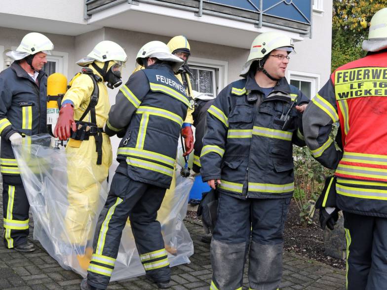 Großeinsatz des Zolls und der Feuerwehr an der Wickeder Straße 29 in Wiehagen. Ersten Recherchen zufolge wurde hier am heutigen Donnerstagmorgen (30. Oktober 2014) ein Drogenlabor in einem unauffälligen Mehrfamilienhaus direkt an der Straße entdeckt.