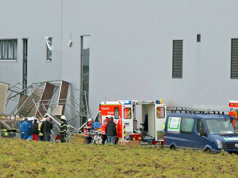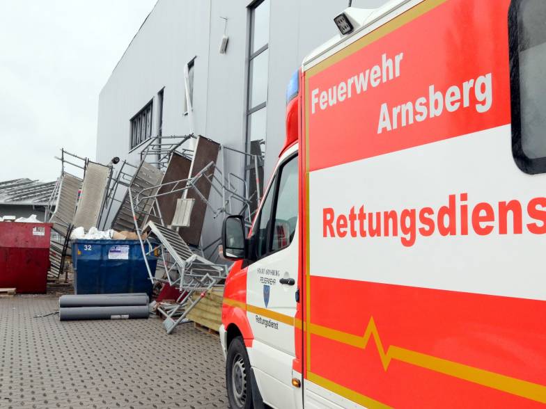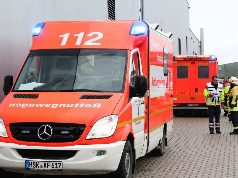 Drei Verletzte bei einem Arbeitsunfall am Freitag, 12. Dezember 2014, im Industriegebiet Westerhaar in Wickede.